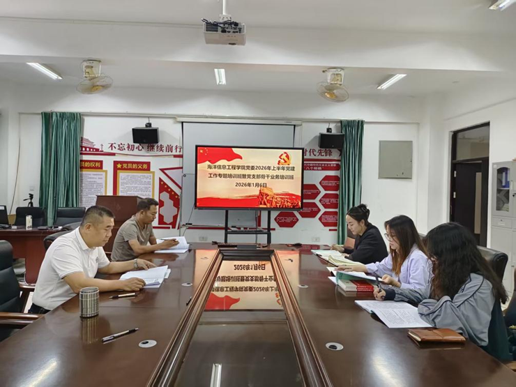 为夯实基层党建基础,提升党支部骨干履职能力,推动学院党建工作高质量发展,1月6日下午,海洋信息工程学院党委在9303会议室举办2026年上半年党建工作专题培训暨党支部骨干业务培训班。学院党委书记谢锡銮担任主讲人,各党支部委员全程参训。